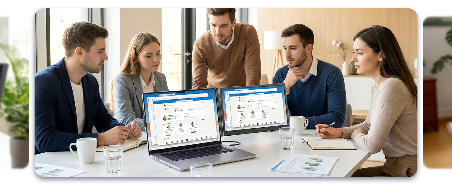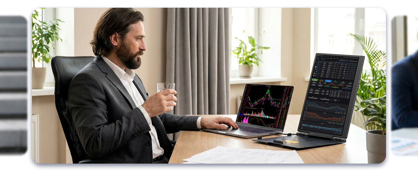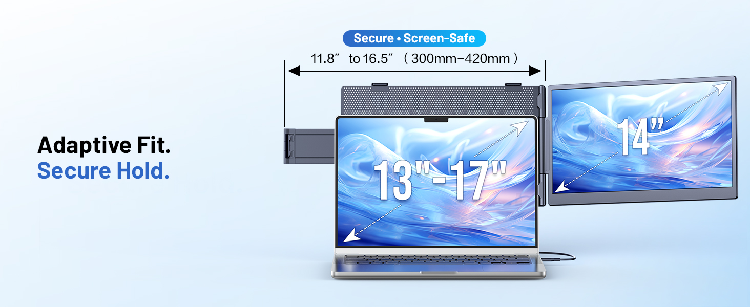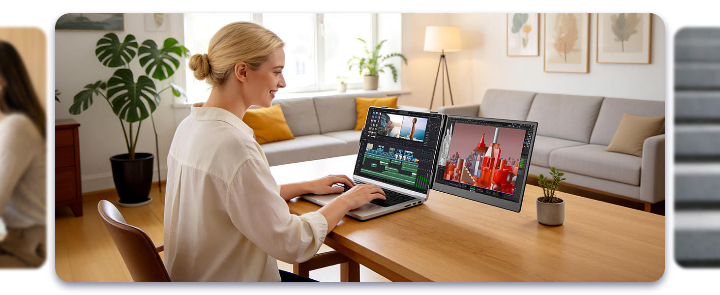 Perfect for professionals who need extra screen space for multitasking, code comparison, and productivity boost. Dual Screen Extender for Laptop 13-17.3". Plug & Play External Monitor with 14-inch FHD 1080P IPS Display, 100% sRGB color accuracy.