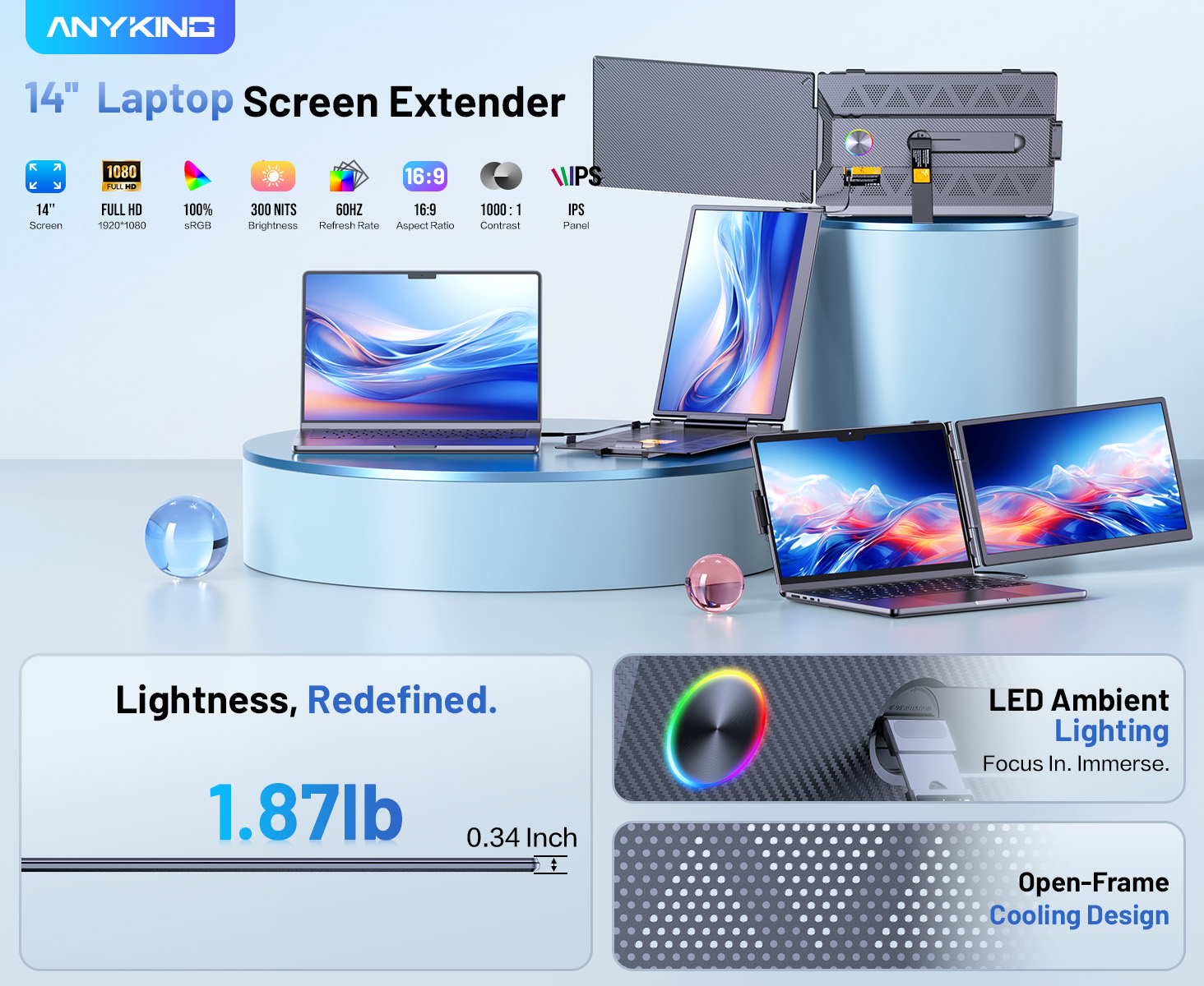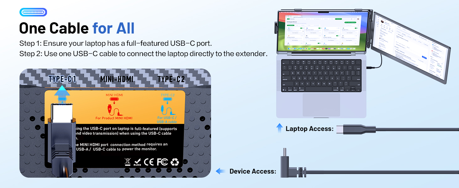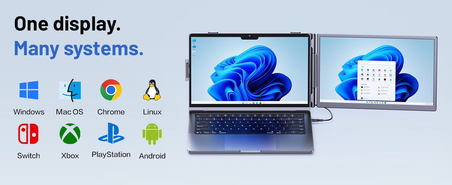 Perfect for professionals who need extra screen space for multitasking, code comparison, and productivity boost. Dual Screen Extender for Laptop 13-17.3". Plug & Play External Monitor with 14-inch FHD 1080P IPS Display, 100% sRGB color accuracy.